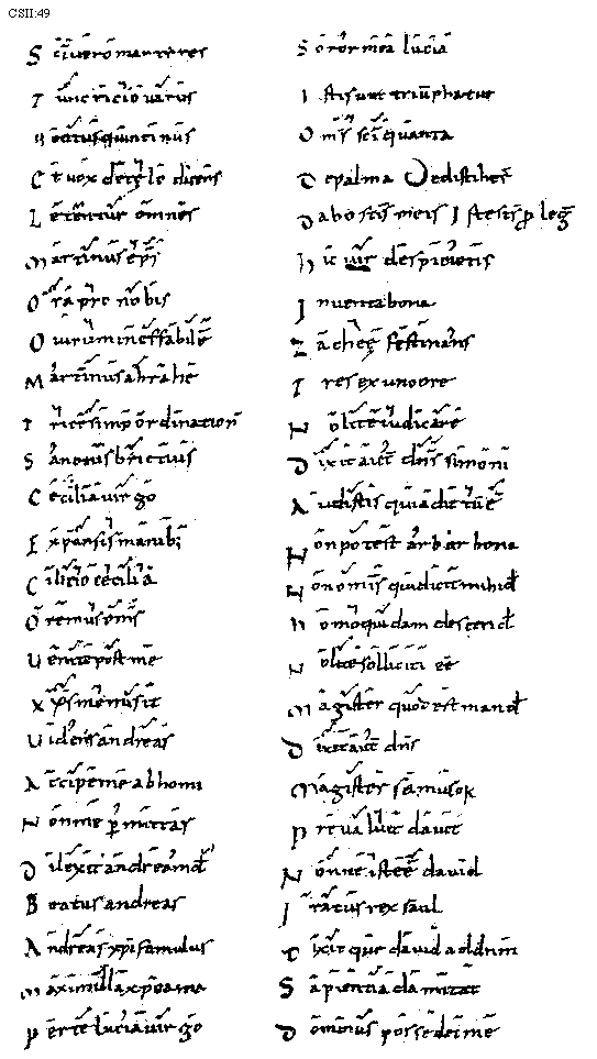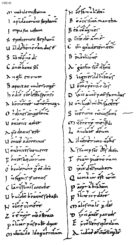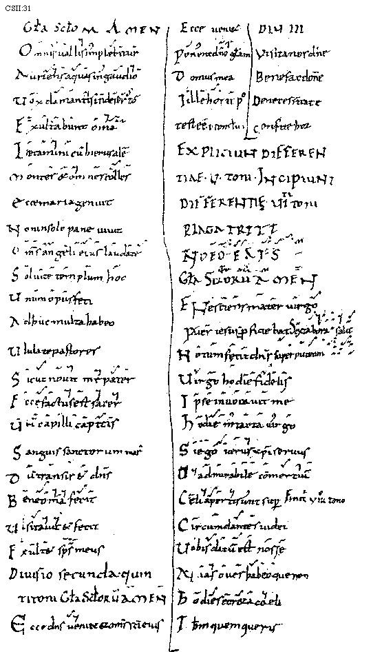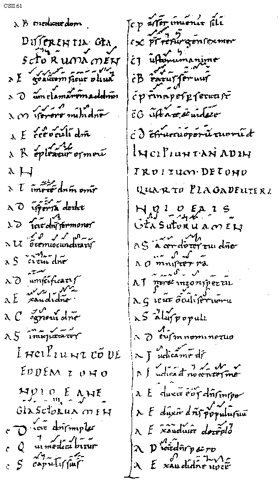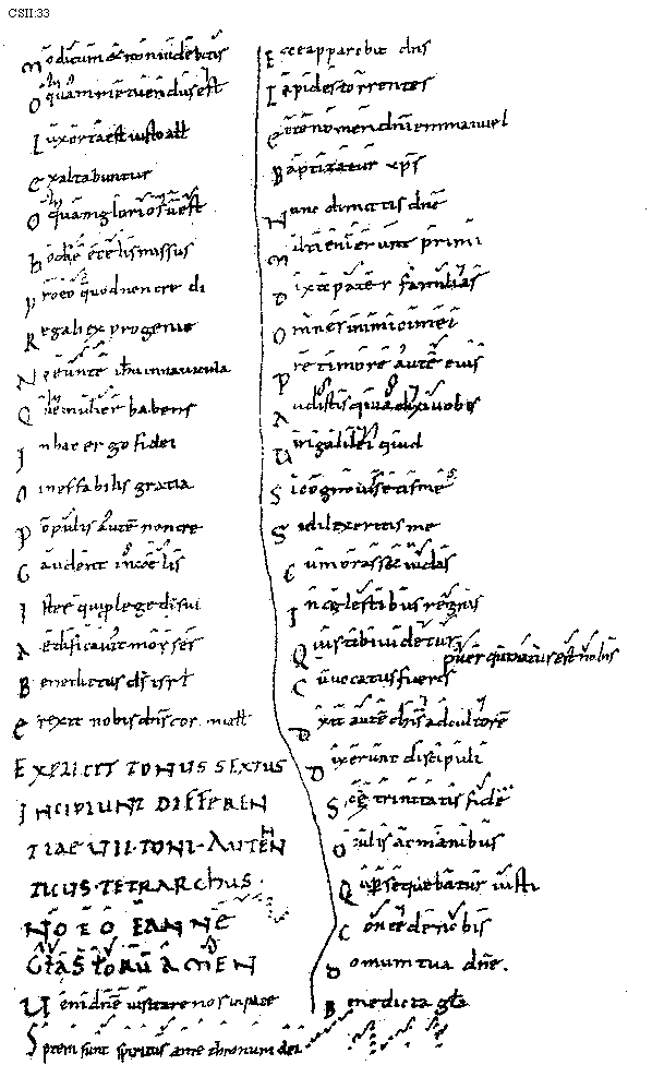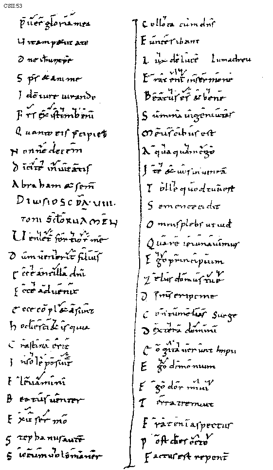 [70] Omnia responsaria notare, tres tantum aut quatuor responsoria de unoquoque tono notabimus. Ex quibus prudens cantor colligere potest alia responsoria, que secundum suprascriptum tenorem modulantur, de primo tono sunt. Sic et in reliquis sentiendum est.