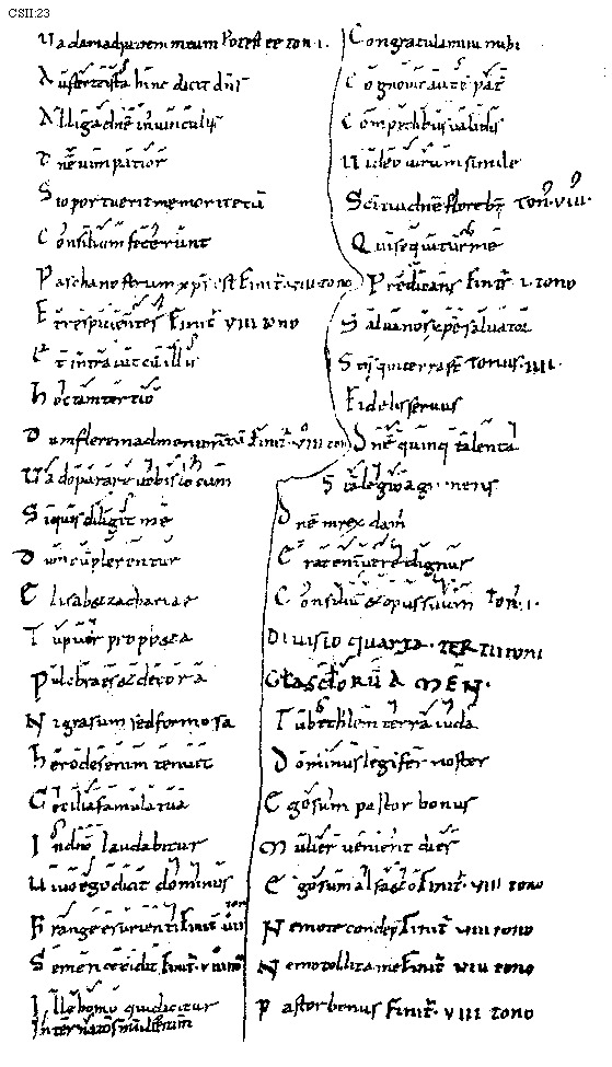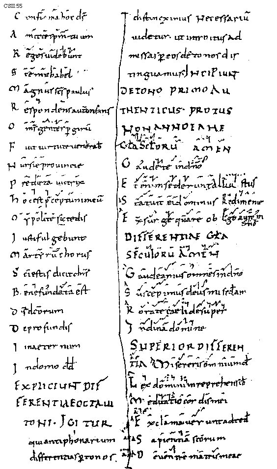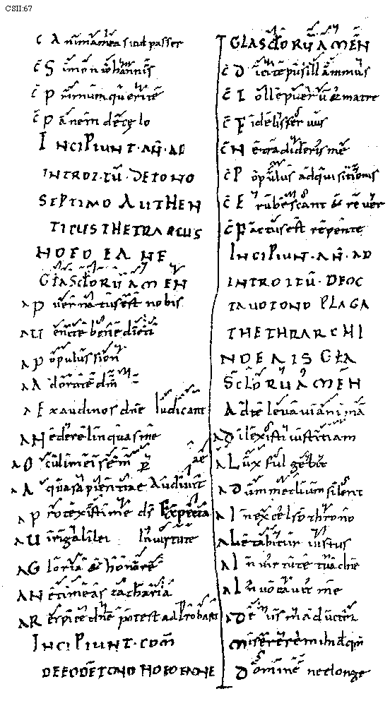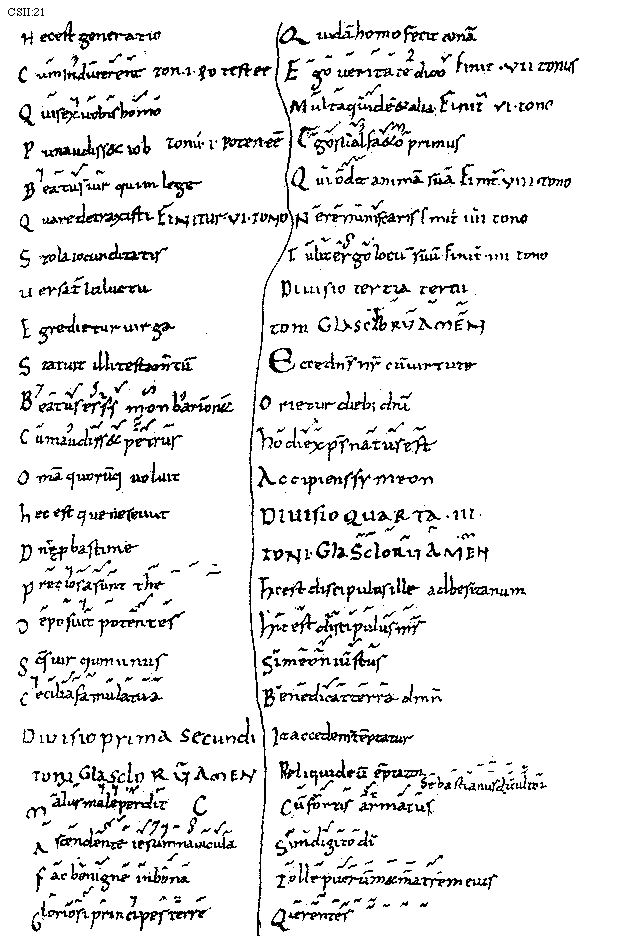 [right column] Illud autem omnis cantor scire debet quod in omni tono principium est, similiter antiphone et communionis. Igitur quia aniphonas, introitus et communiones propriis tonis conjunximus, opportunum videtur ut responsoria per eosdem tonos discernamus.