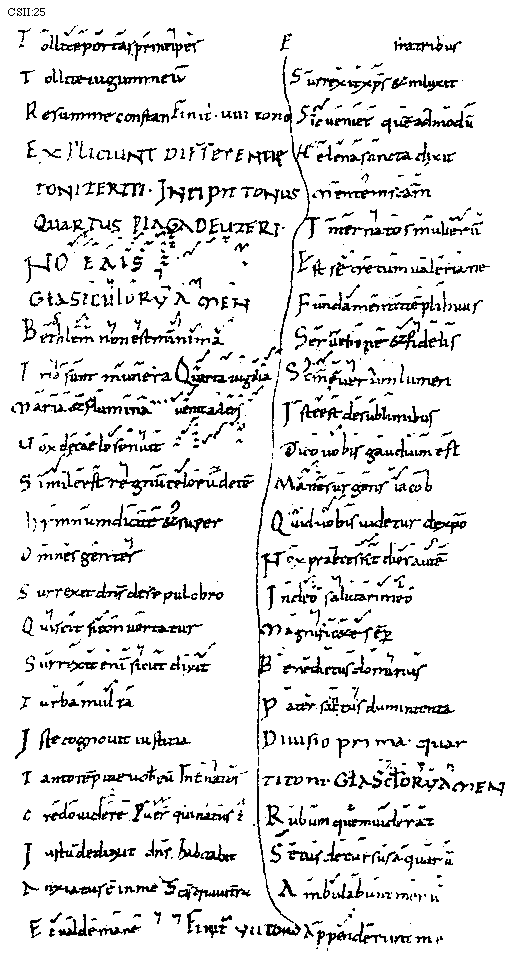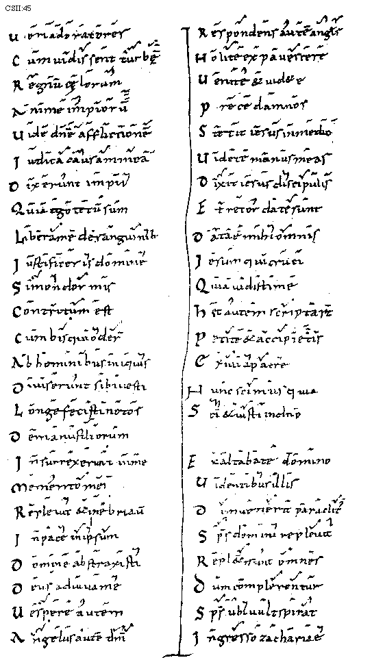 Ignatius Antiochie Syrie tertius post apostolum Petrum Episcopus, qui et jam cum ipsis degebat apostolis, vidit visionem angelorum, quomodo per antiphonas sancte Trinitati dicebant ymnos. Isque modus visionis angelorum Antiochie tradidisse probatur ecclesie, et ex hoc ad cunctas transivit ecclesias. Antiphona grece dicitur, latine vox reciproca.