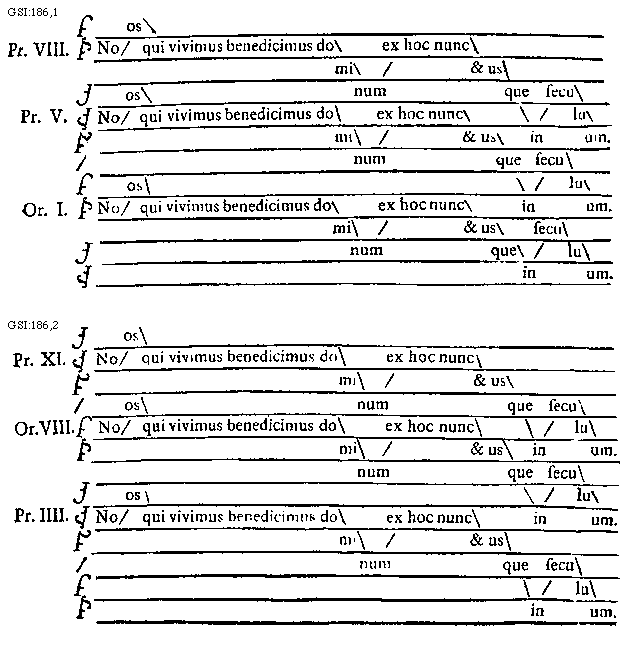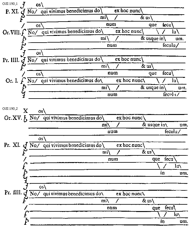 D. Dicam et ego hoc idem; dehinc paullulum ab hoc ordine declinans in sequenti latere [signum] deuterum sonum [signum] tetrardo quasi trito [signum] subiungam ita: