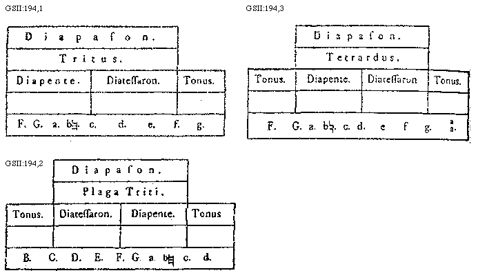[GSII:194,2; text: Diapason. Plaga Triti. Tonus. Diatessaron. Diapente. B. C. D. E. F. G. a. b[sqb]. c. d.] [THEMUS 02GF]